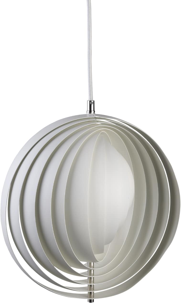 Kuglelampe med lodrette lameller arrangeret som en ventilator til individuel regulering af lyset. Loftsmarkise medfølger